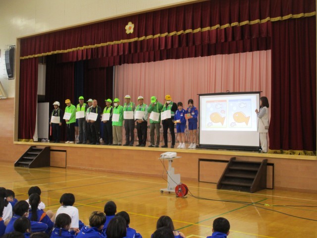 安全パトロール隊の皆さんとクイズをしたり、感謝の歌をプレゼントしたりしました。