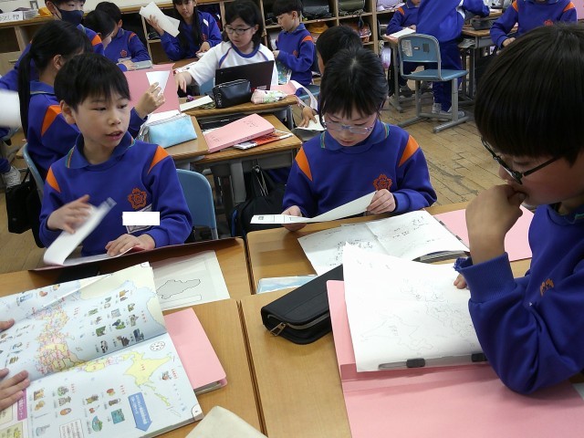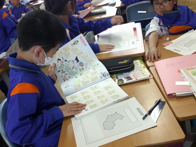 「この形はどこの県かな?」とても難しいなと思っているときに、先生が、「グループはチームだよ!」と言ってくださった瞬間、心強くなって「みんな教えて!」という声が飛び交いました。みんなで考えると楽しいね。