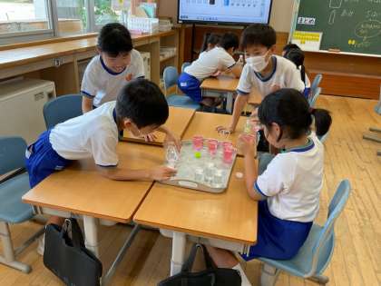 コップ一杯に入れて比べるとよいと気付くことができました。