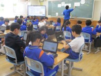 正方形と長方形の面積の求め方を考えています。1㎠がいくつあるか効率よく考えることがポイントです。
