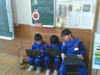 外国語活動の時間です。英語でクイズを出し合っています。What's this? Hint please. 楽しくやり取りしていました。