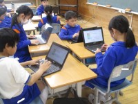 目当てカードを書いています。1学期がんばることを詳しく書いています。