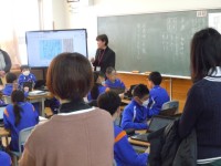外国語の時間です。英語で友達の好きな〇〇を聞き合っています。クラス替えをして1か月ほどたつので、気軽に会話できるようになってきています。