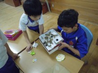 生活科の時間です。動くおもちゃ作りが進んでいます。楽しく遊べるように改良を重ね...