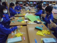 図画工作の時間です。紙粘土でマグネット付きマスコットをつくっています。これは大...