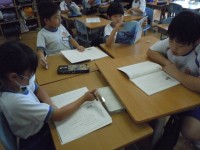 社会の時間です。スーパーマーケットの見学では、バックヤードを中心に調べ学習をし...