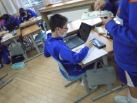 図画工作の時間です。学校のお気に入りの場所をタブレットで撮り、描いています。6...