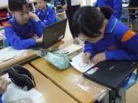 図画工作の時間です。卒業制作に取り掛かっています。記念作品ということで、慎重で...