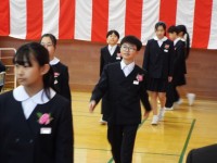 代表児童が、2学期がんばったこと、冬休みや3学期にがんばりたいことを発表した後、...