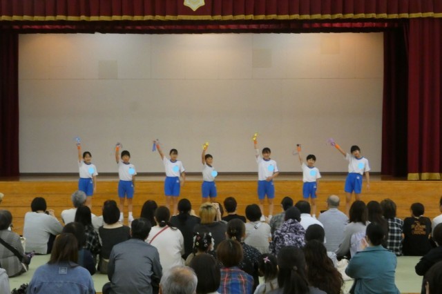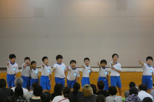 5年生が発表したのは、体育科で学習してきた運動です。1学期末から、「学習発表会で見に来られる人たちにどんなことを伝えたいか」を話し合い、一人一人が目当てをもって練習を重ねてきました。練習の際には、自分たちで場を工夫して台上前転や抱え込み跳びの練習をしたり、「もうちょっとでできるよ!がんばれ!」などと友達を励ましながらみんなで高め合ったりする姿を、たくさん見ることができました。当日は、跳び箱、マット運動、縄跳び、そしてダンスを通して、「運動は楽しい!」ということを、身体全体で表現することができました。この学習発表会での成功体験を生かし、これからも、みんなで声をかけ合い、ひとつのものを計画的に作り上げていく経験を重ねていきます。