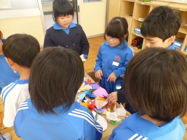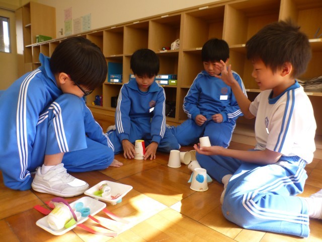 生活科の授業でおもちゃ作りをしていました。今日は、集大成の一つとしてみんなで作ったおもちゃで遊ぶ集会をしました。この日に向けて、ルールやおもちゃを遊ばせるコースや景品を作りました。自慢のおもちゃや景品のおかげで、みんなで仲よく遊びました。