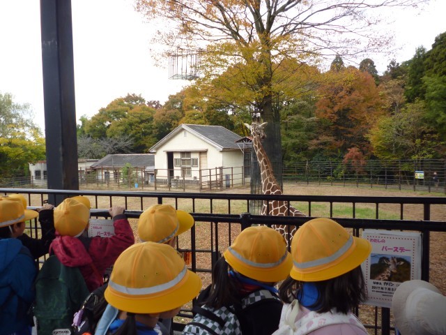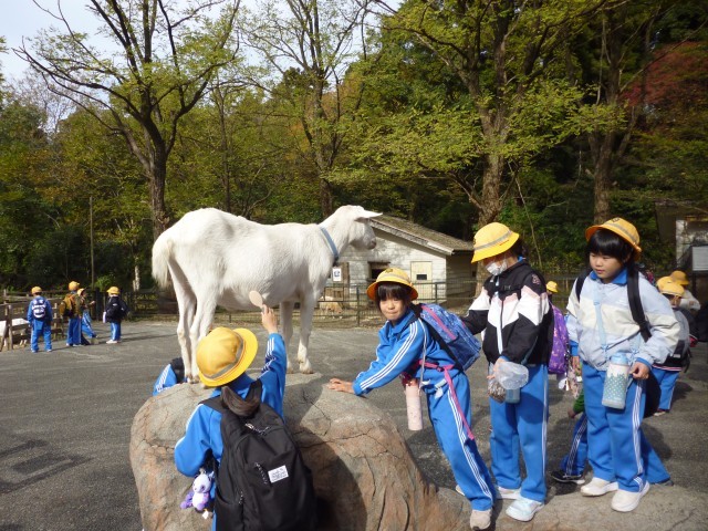 その後は、たくさんの動物を見たり、ふれあい広場でやぎと触れ合ったりしました。道中ドングリや落ち葉を拾うなど、天候に恵まれ秋を感じることができた楽しい一日でした。
