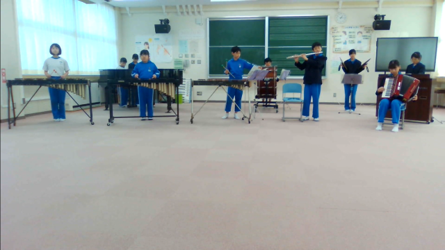 音楽・ダンスクラブ 心を合わせたミッキーマウスマーチ 12月18日(木) 公開日 2025/12/19 更新日 2025/12/19 委員会・クラブ 音楽・ダンスクラブでは1学期からミッキーマウスマーチの練習をしています。奏でる楽器は、ピアノ、オルガン、木琴、アコーディオン、フルート、小太鼓、大太鼓、シンバルの8種類です。たくさんの楽器で響きも豊かに、心とリズムを合わせています。
