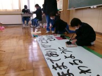 卒業式等の掲示のために、お花作りを始めました。みんなで声をかけ合いながら、役割分担して進めています。