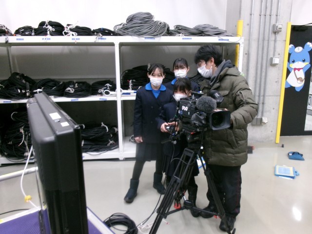 アナウンサーとして大切にしていることや、ニュースの時間に緊急情報が入ってきたときに何をしているのかなどを、具体的に教えていただきました。実際のスタジオや副調整室を見せていただくとともに、カメラに実際に触れながら撮影を行う体験もできました。様々な仕事の内容にふれ、実際に話をお聞きすることで、放送局では色々な仕事をする人たちが協力して分かりやすい情報を素早く発信していることを実感できました。
