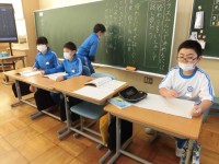 現在、給食マナー週間です。箸を正しく持つこと、茶碗や皿を持って食べることに心がけています。