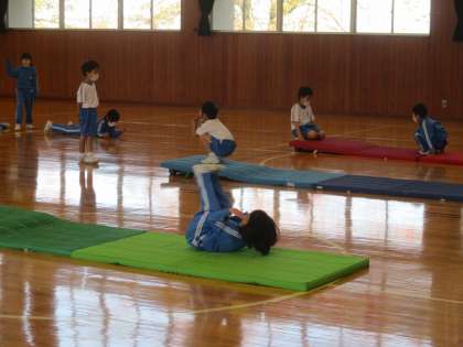 周りで順番を待っている子供たちは、友達の技が決まると拍手をして応援していました。