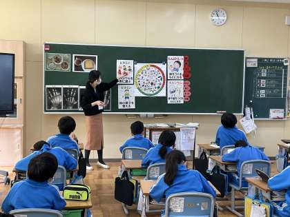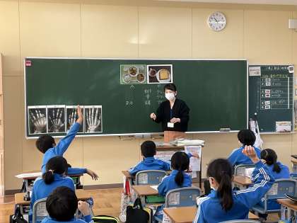 たんぱく質やカルシウム、ビタミンについて教えていただくと「ビタミンAとかB」「たんぱく質に大豆製品がふくまれるなら枝豆は?」など知っていることを活発に発表しました。