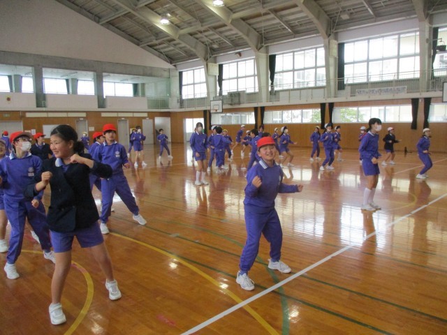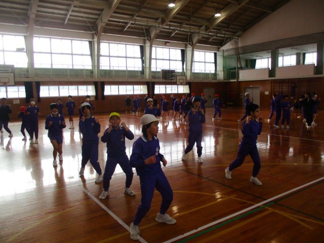 3、4年生の体育指導では、「ダンスホール」を練習しています。ダンスでよく使うステップやターンを真似しながら練習しました。「前よりもかっこよく動けるようになったよ」と嬉しそうに体を動かしていました。