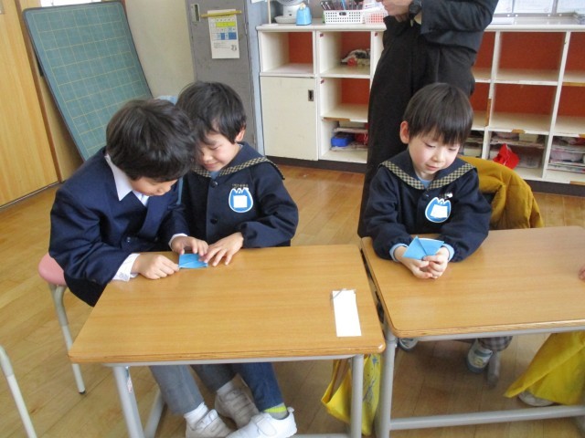 一緒に「おちゃらかほい」を歌ったり、折り紙を折ったりしました。