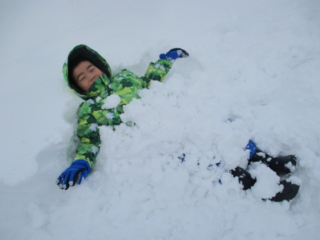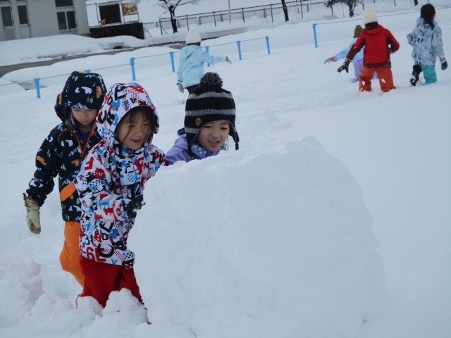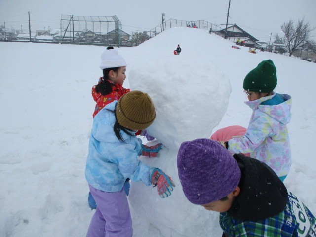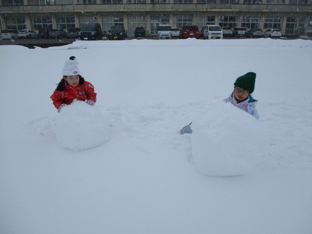 真っ白なグラウンドに寝っ転がったり、協力して大きな雪だるまやかまくらをつくったりしました。