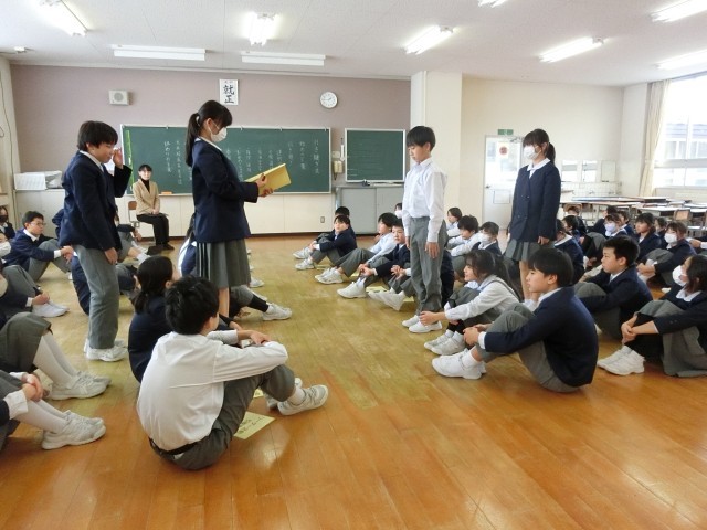 今日は、6年生から5年生への引継ぎ式でした。