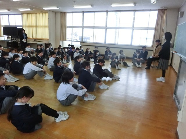 5・6年生は、2月6日(金)のスキー教室に向けて、事前打合せを行いました。「今年まだ一回も滑ってないから、不安だけど、頑張ろう」と、ちょっと心配そうに話す子供や、「リフトに何回乗れるかな、楽しみ!」と、期待に胸を膨らませる子供。様々な思いをもちながらも、当日の日程や自分の目当てを確認し、スキー教室に向けて前向きな気持ちを整える時間となりました。49人で活動するため、集団行動が大切なことから、チームワークアップのミニゲームも行いました。当日は、安全第一、笑顔でスキーを楽しんでほしいと思います。