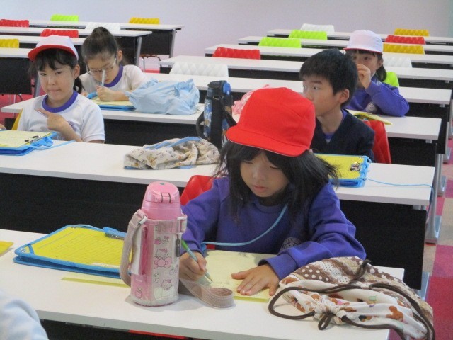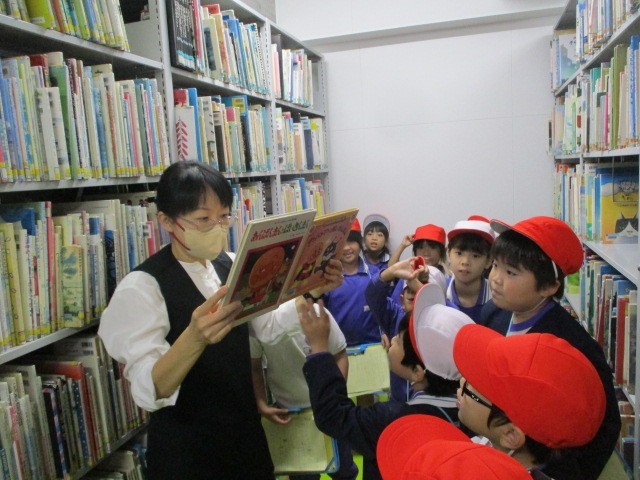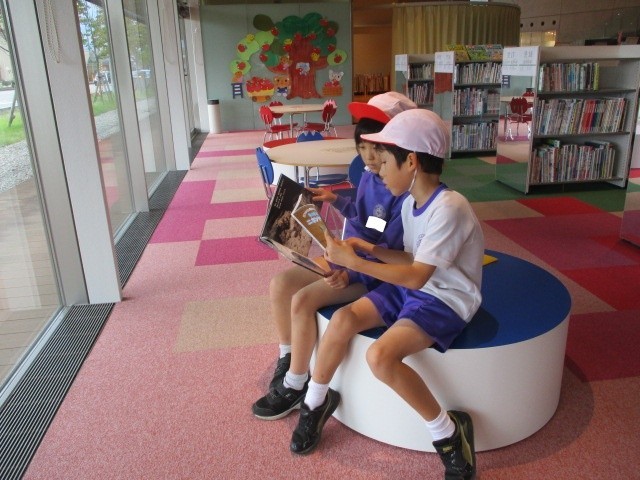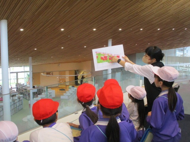 生活科の学習「みんなでつかう まちのしせつ」の学習で、砺波図書館に行きました。館内の見学では、1階と2階だけでなく、普段入ることができない「書庫」にも案内してもらいました。実際に見て聞いて分かったことや初めて知ったことをたくさんメモしていました。「図書館のカーペットがチューリップ柄になっていることを初めて知ったよ」「自分で借りられるようになったから、今度は10冊借りたいな」「図書館にまた行きたいな」と学校に帰ってきてからも、学んだことや砺波図書館にまた行きたいことを話していました。