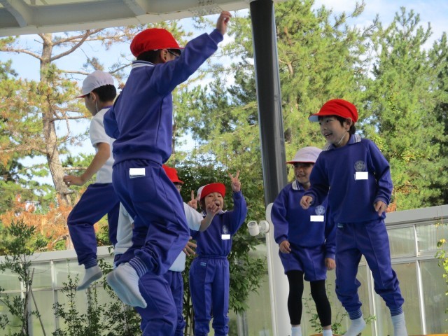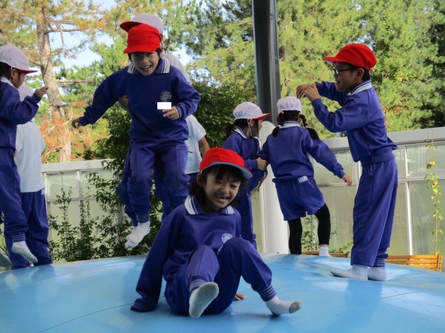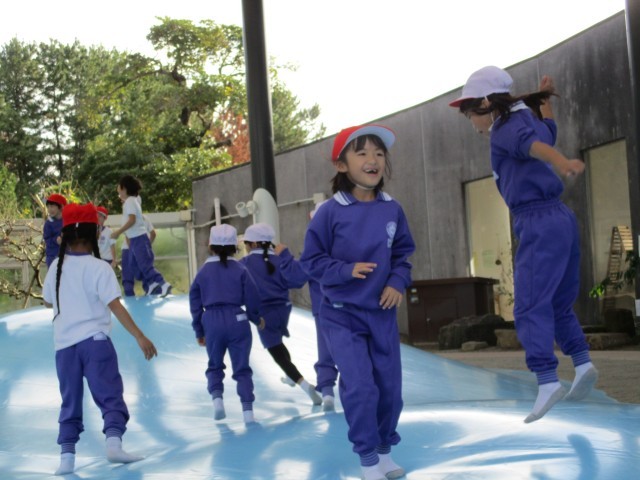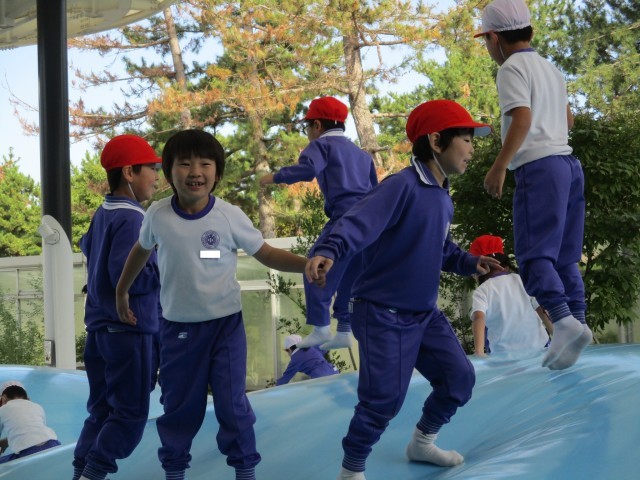 高くジャンプしたり、ふわふわドームの上で鬼ごっこをしたりして楽しみました。