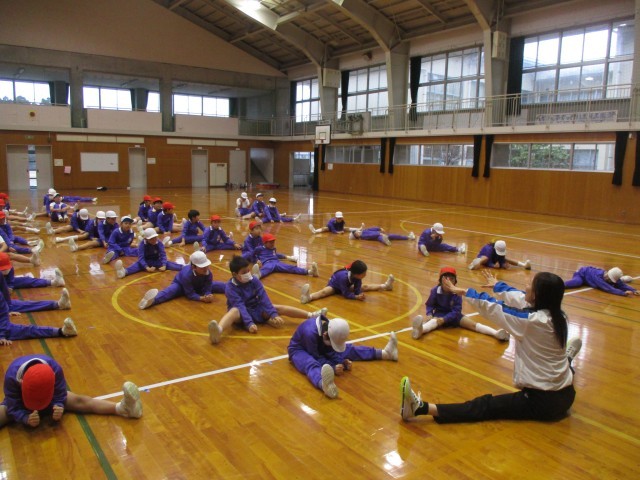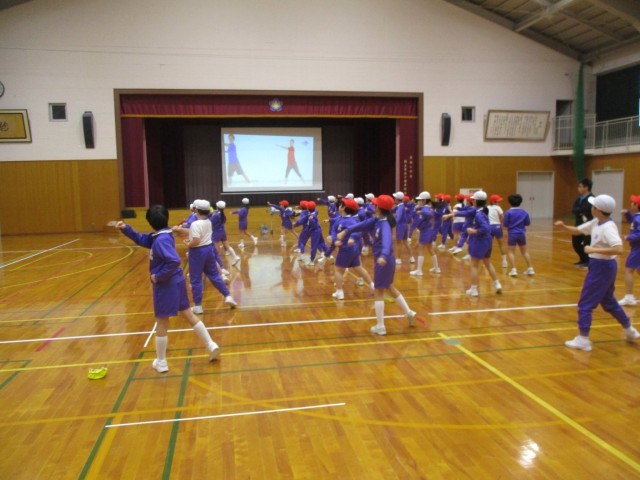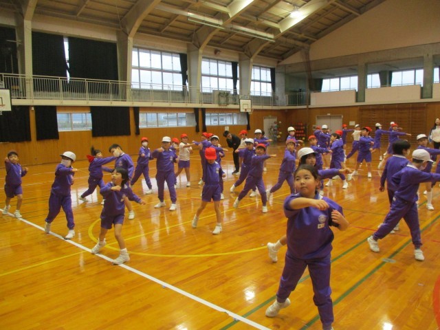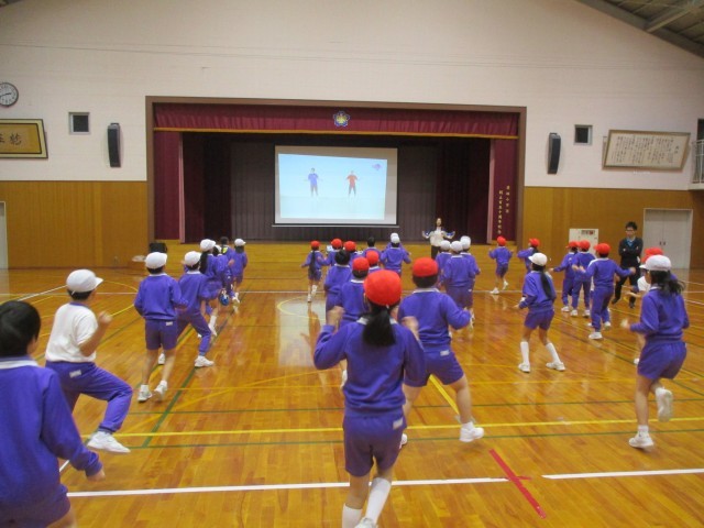 体育指導(3、4年)12/8 公開日 2025/12/08 更新日 2025/12/08 お知らせ 体育の時間に、講師の先生に体育の指導をしていただきました。子供たちはエアロビクスの動きを体を大きく動かして楽しんでいました。大きく手を振る動きやジャンプする動き等のいろいろな動きを練習しました。 +1 3年生 4年生