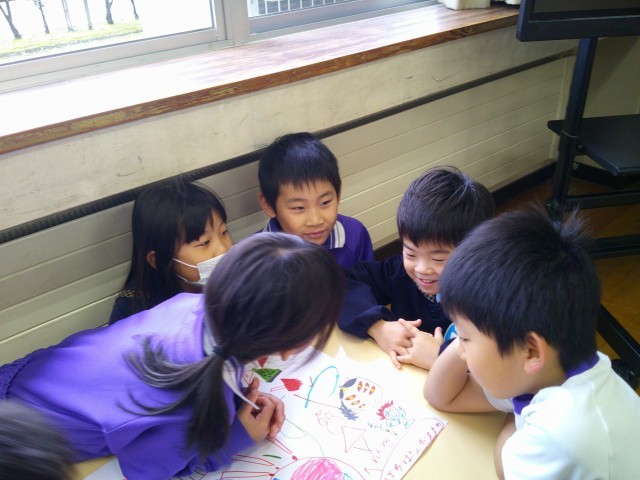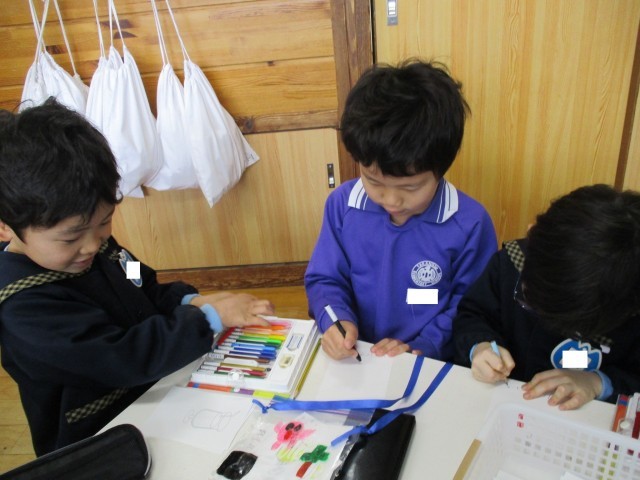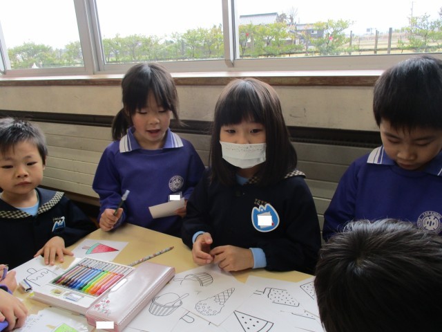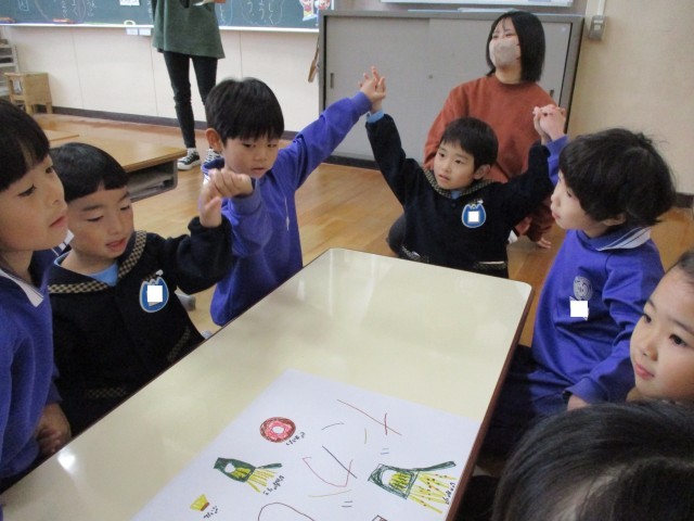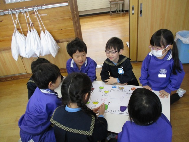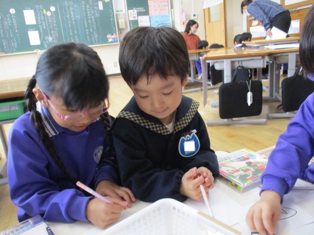 「トマトもいいね」「じゅーすって書ける?小さいゆだよ」等と教え合っていました。