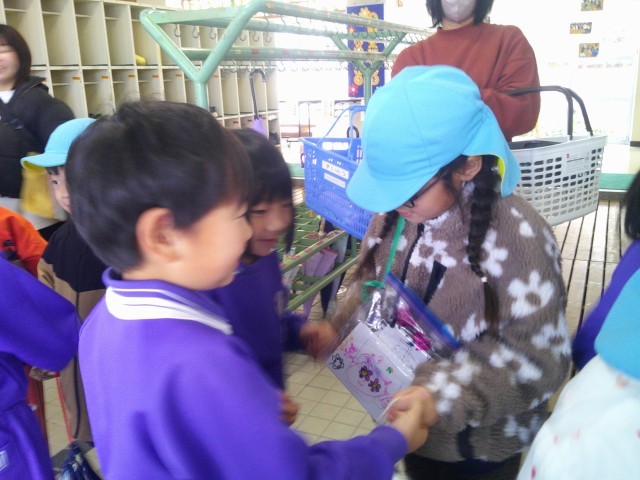 帰りは、「また遊ぼうね」「入学してくるのを待ってるよ」等とペアの年長さんに伝え、バスが見えなくなるまで手を振っていました。