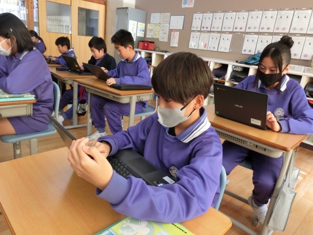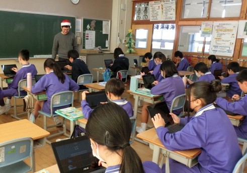 メキシコのクリスマスの過ごし方についてお話を聞いた後、みんなでタブレットを使ったゲームに取り組みました。
