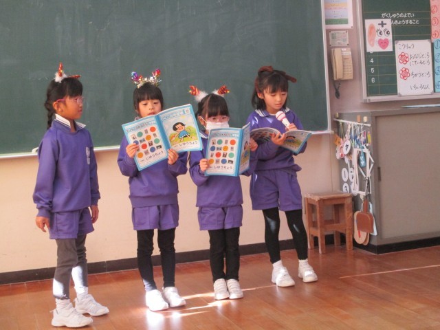 「なぞなぞ」では、おもしろい問題がたくさんありました。みんなよく考えて発表していました。