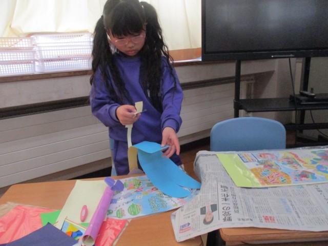 図工で「つくってへんしん」の学習をしています。