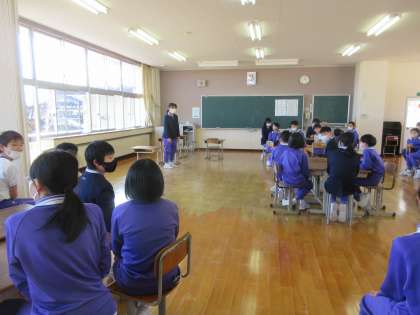 5年生に感謝を伝えよう(6年生)1/17 公開日 2024/01/17 更新日 2024/01/17 お知らせ 総合的な学習の時間に計画を立てていた、下級生に感謝を伝えるプロジェクトがスタートしました。今日は、5年生と一緒に人狼ゲームを行い、5年生に楽しんでもらう活動でした。たかの子ルームに5、6年生が集まり、6つのグループに分かれてゲームをしました。ゲームの中で議論したり、一緒に笑ったりする姿が見られ、少しは楽しんでもらえたという思いをもつことができました。
