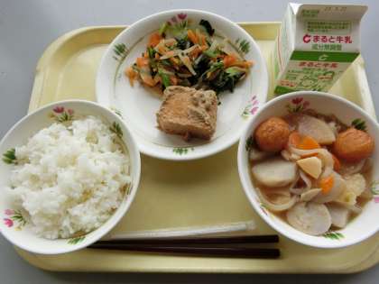 今月の献立1月16日(月) 公開日 2023/01/16 更新日 2023/01/16 お知らせ 今日の献立は、ごはん、牛乳、厚揚げのごまだれがけ、昆布漬け、野菜のうま煮です。 献立表には、料理名のほかに、給食に使われる食品が書いてあります。給食センターの先生がバランスやいろどりなどを考えて献立をつくっています。毎日おいしくいただきたいですね。