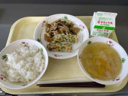 今日の献立1月17日(火) 公開日 2023/01/17 更新日 2023/01/17 お知らせ 今日の献立は、ごはん、牛乳、ちくわの磯辺揚げ、れんこんと茎のわかめきんぴら、みそ汁です。ちくわに青のりの入った衣をつけて油であげてあります。みなさん、大好きですね。
