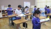 硬筆でも「曲がり」(3年生)10/21 公開日 2024/10/21 更新日 2024/10/21 お知らせ 先日、毛筆で「曲がり」の筆使いを学習しました。今日は、それを硬筆に生かして書きました。曲がるときは、「力と速さを少しゆるめる」というポイントを意識して書きました。
