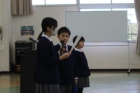 理科の時間に、白米にはでんぷんがあるのか、確認する実験をしました。「じゃがいもにもあるかもしれないな」「とうもろこしにもヨウ素液をかけてみるとどうなるだろう?」と、実験から、新しい課題を生み出している6年生です。