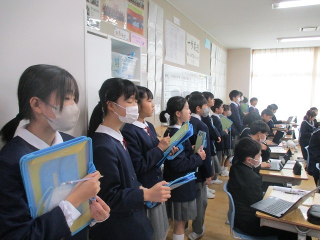 出町中学校の見学へ行きました。1年生から3年生までの授業を見学し、中学校生活へのイメージをもちました。静かに自分の学習に向き合う姿や、学習の目的をはっきりさせて友達と対話して学ぶ姿から、これからの自分たちはどのように残りの小学校生活を過ごしていけばよいのか、考えていました。実際に中学校の様子を見学させていただいたことで、進学を楽しみにする気持ちがより一層高まった様子でした。