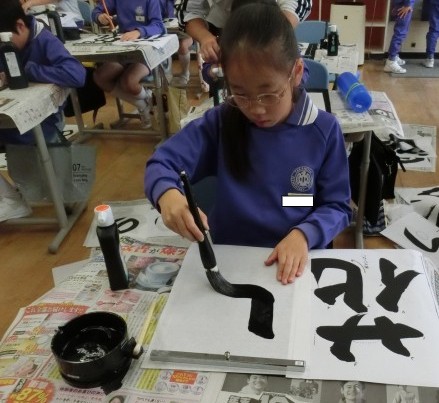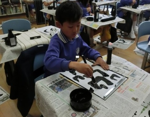 子供たちは、大きな筆で書くことの楽しさと難しさを感じているようでした。