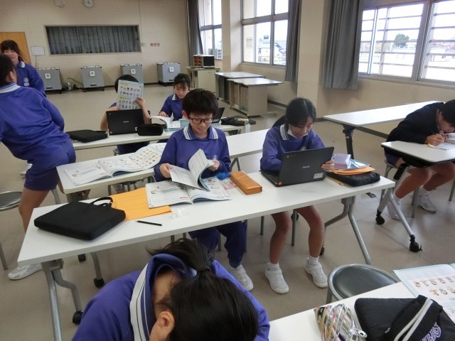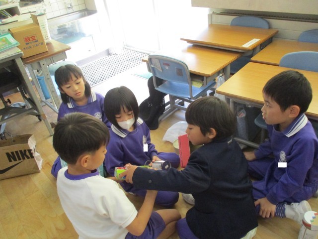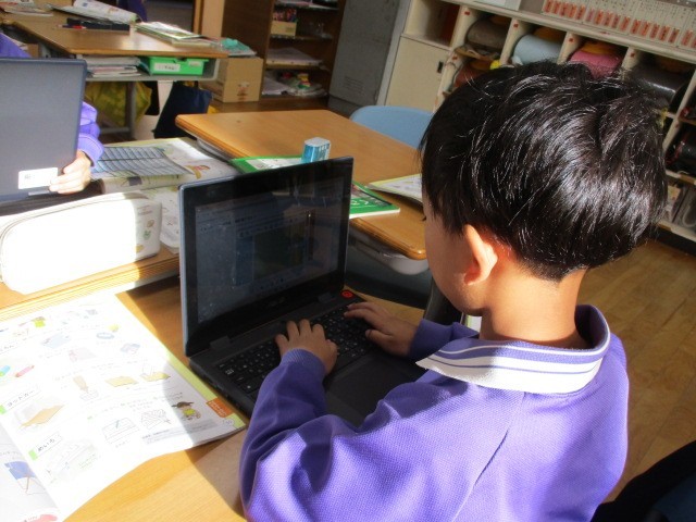 国語の学習では、生活科で作ったおもちゃの説明書を1年生に向けて書いています。今日は、おもちゃを作るときに必要な材料や道具、作り方を調べてワークシートやタブレットにまとめました。作り方を思い出すために作ったおもちゃを見て「あ~そうだった」と思い出しながら書いたり、友達と協力して書いたりしていました。来週は1年生とおもちゃパーティーがあります。その時に、おもちゃの説明書も一緒に渡すことができるように準備を進めていきたいと思います。