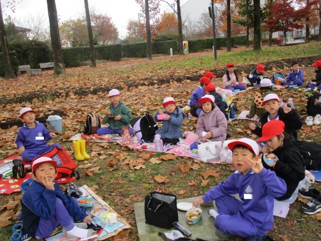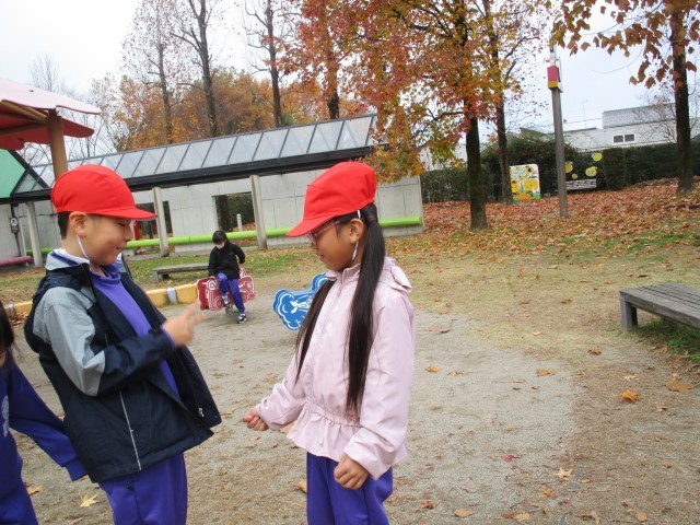 お弁当タイムが終わると晴れてきたので、チューリップ公園でみんなで遊びました。