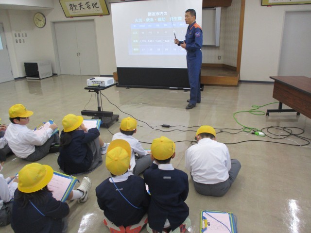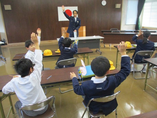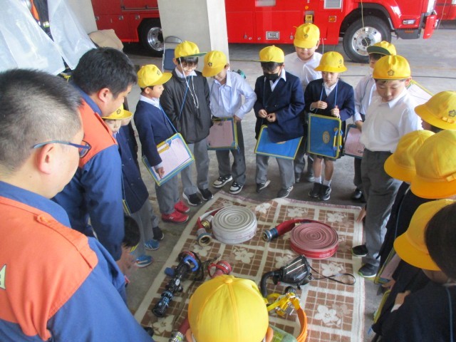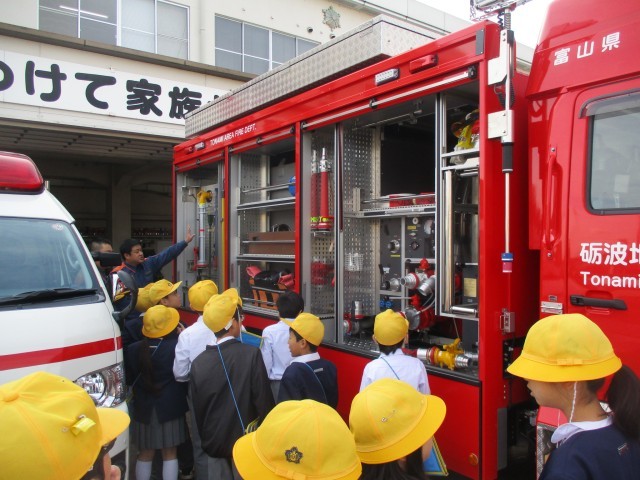 今日は、社会科の学習で、砺波警察署と砺波消防署に見学に行きました。くらしを守ってくださっている警察官や消防署員の方からの説明を聞き、仕事内容や思い、工夫について学びました。子供たちは白バイやパトカー、消防車などを実際に見て、「こんなに大きいんだね」「救助の時にはこんな重そうな道具も使っているんだね」と驚いていました。今日教えていただいたことを生かして、くらしを守る仕事についてまとめていきます。