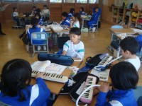声の大きさや動きなど、様子を思い浮かべながら先生と一緒に考えています。