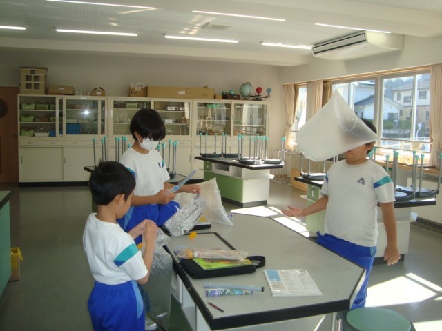 やまぶき・すずらん 4年生合同理科 空気の学習 10月30日
