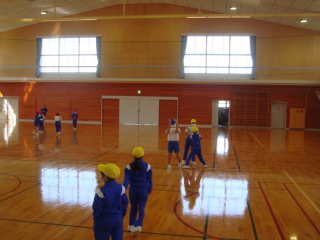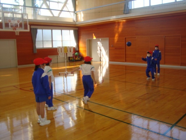 ボールを投げたり、受け取ったりする練習をしてからゲームを行いました。