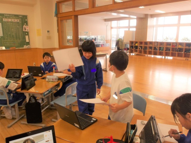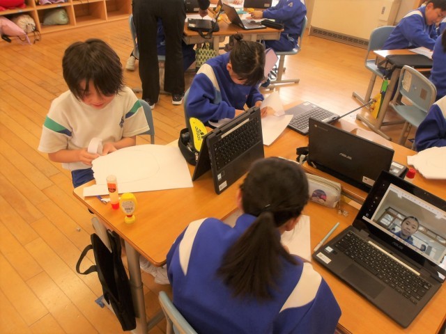 写真を見ながら画用紙をちぎって輪郭を作り、友達と「こんな感じかな?」と見合いながら、楽しそうに活動する様子が見られました。