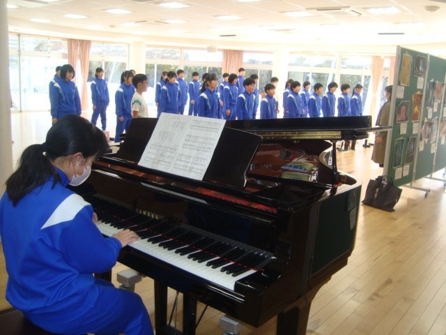 田形先生に来ていただき、卒業式の歌の指導をしていただきました。